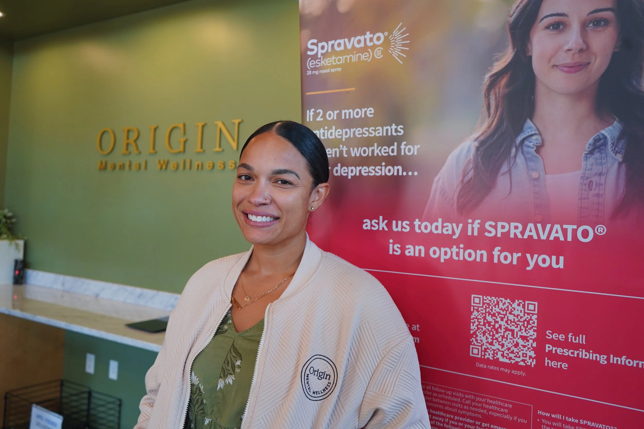 Spravato® is the first FDA-approved nasal esketamine treatment for treatment-resistant depression (TRD) and major depressive disorder (MDD) with suicidal thoughts. Unlike traditional antidepressants, it works rapidly and is administered under supervision in certified clinics. Origin Mental Wellness is a certified clinic that offers Spravato.
